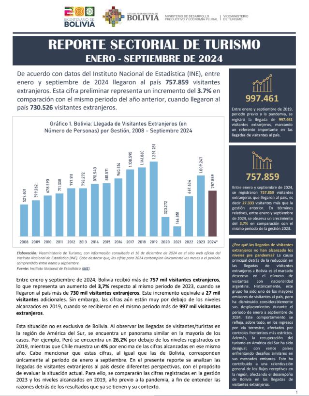 Fuente: VICEMINISTERIO DE TURISMO| Edición: 2024 septiembre | Fecha: 16/01/2025 | PDF |