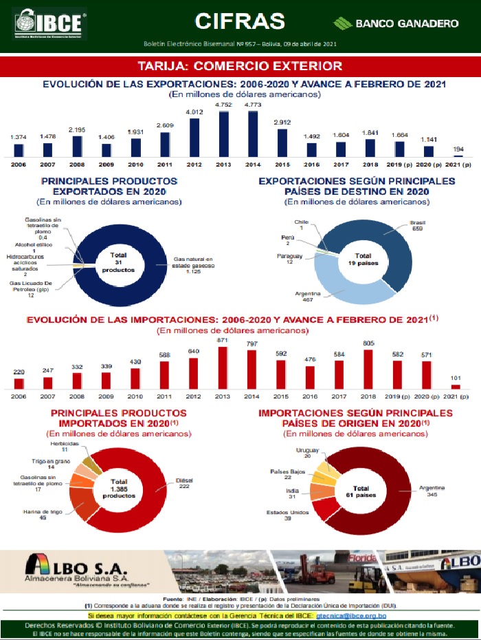 TARIJA: COMERCIO EXTERIOR 2006-2020